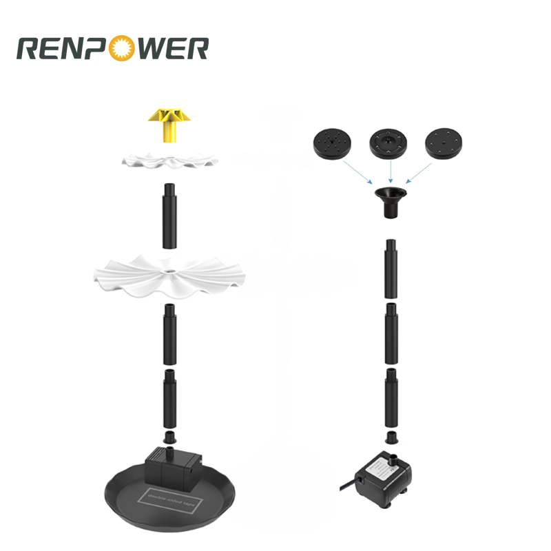 နေရောင်ခြည်စွမ်းအင်သုံးသောဥယျာဉ်အထည် 1.5W DC Fountain Pump Solar Minarture Fountain Pool Decoration Pump