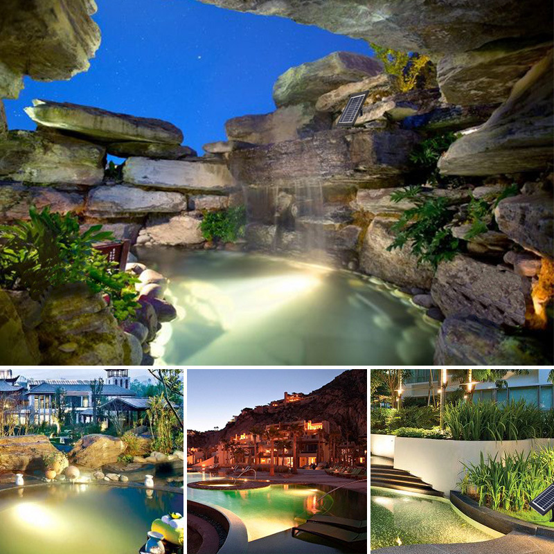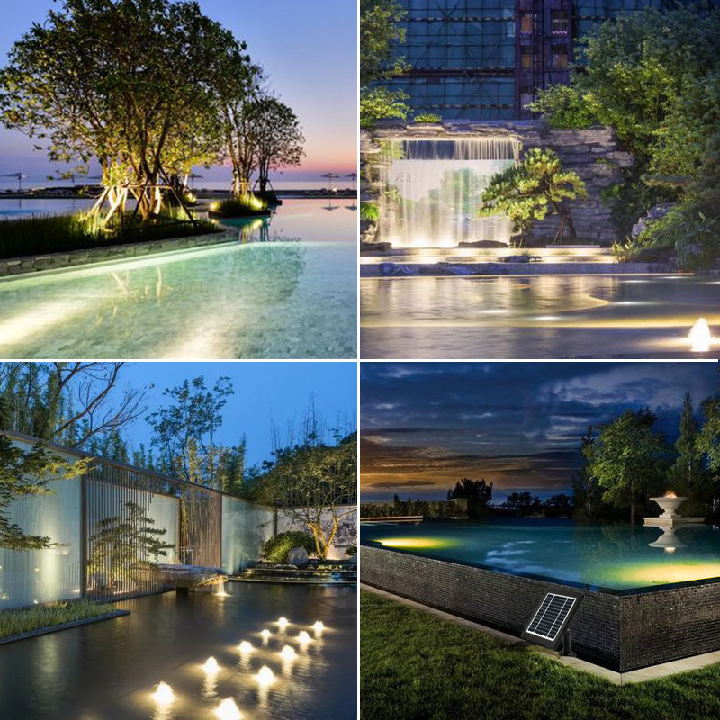နေရောင်ခြည်စွမ်းအင်သုံး LED အသစ်များ IP68 နေရောင်ခြည်စွမ်းအင်သုံးရေအောက်ရေအောက်အရောင်များအပြင်ဘက်ဥယျာဉ် Pool အလှဆင်အလင်းရောင်