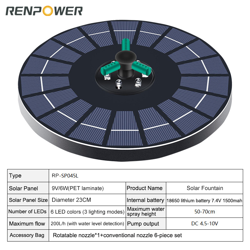 နေရောင်ခြည်စွမ်းအင်သုံးသောဥယျာဉ်အထည် 1.5W DC Fountain Pump Solar Minarture Fountain Pool Decoration Pumpနေရောင်ခြည်စွမ်းအင်သုံးစမ်းရေတွင်းသည်ရေကိုရေစုပ်ရန်ရေစုပ်စက်ကိုမောင်းရန်နေရောင်ခြည်စွမ်းအင်ကိုအသုံးပြုသောရှုခင်းရှာဖွေခြင်းစက်ဖြစ်သည်။ ဤထုတ်ကုန်သည်စွမ်းဆောင်ရည်မြင့်နေရောင်ခြည်စွမ်းအင်သုံးပြားများနှင့်အစာရှောင်ခြင်းစတင်ခြင်း, ထို့အပြင်ထုတ်ကုန်သည်ပြင်ပစွမ်းအင်ထောက်ပံ့မှုမလိုအပ်ပါ။ ၎င်းသည်တပ်ဆင်ရန်နှင့်လည်ပတ်ရန်မလွယ်ကူပါ, ထုတ်ကုန်ကိုရေကူးကန်စမ်းရေများ,